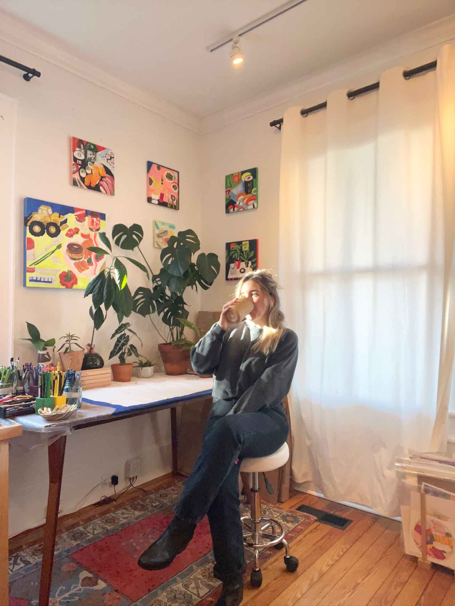 Iced Coffee first, always. Then I go check on my plants. Outdoors in the summer, indoors in the winter. Winter is a bit stressful, as every day feels like a small negotiation to keep them happy until it’s time for their spring move back outside. After that, I head to the studio and start whatever project is on my docket. I love a good to-do list.