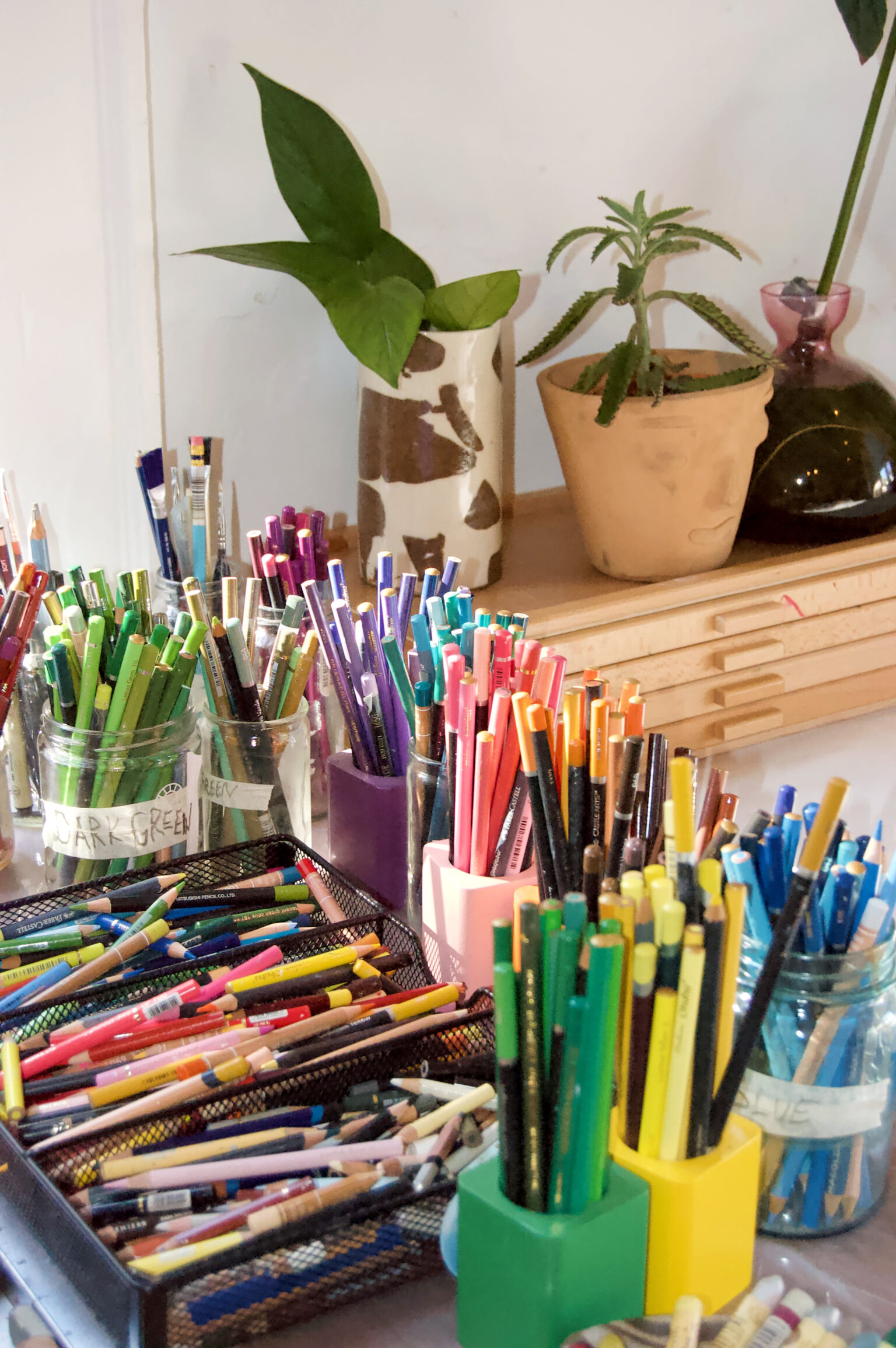Not sure it’s my ideal setup, but currently together. My studio is part of my home, which means my days tend to move fluidly between drawing, cooking, watering plants, and then drawing some more.