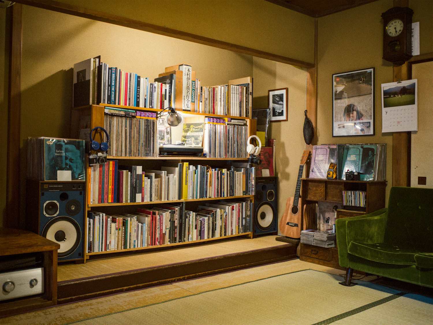 The first-edition photobooks and original first-press vinyl records displayed on a shelf I built myself in the *tokonoma*, the most formal space in a traditional Japanese house. I have named this space *Chinza Records and Books*, and I occasionally welcome my print collectors there.