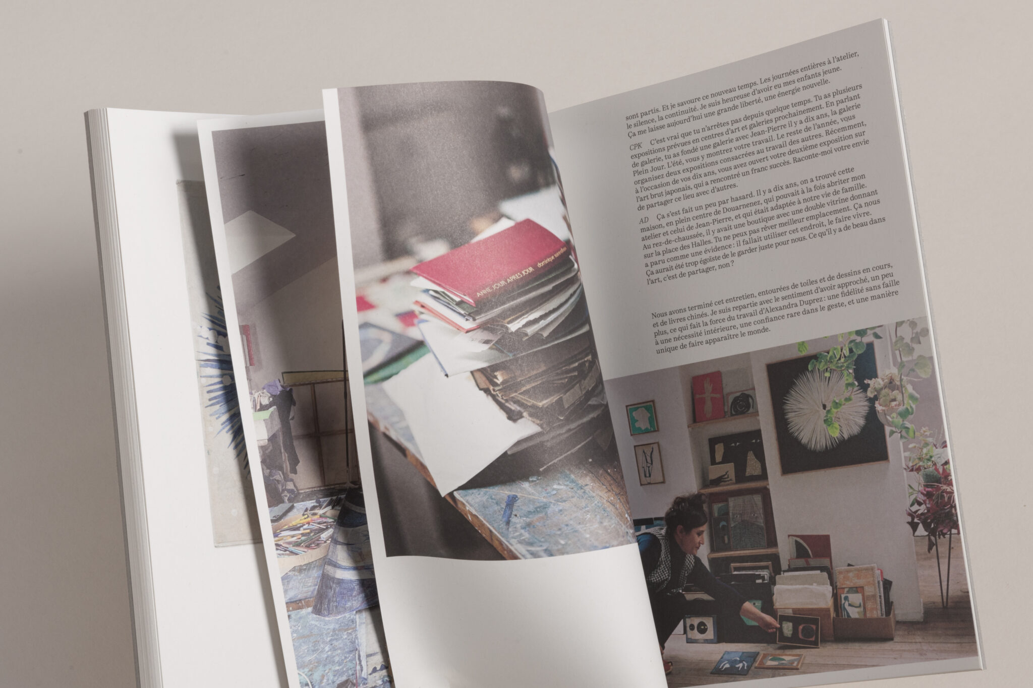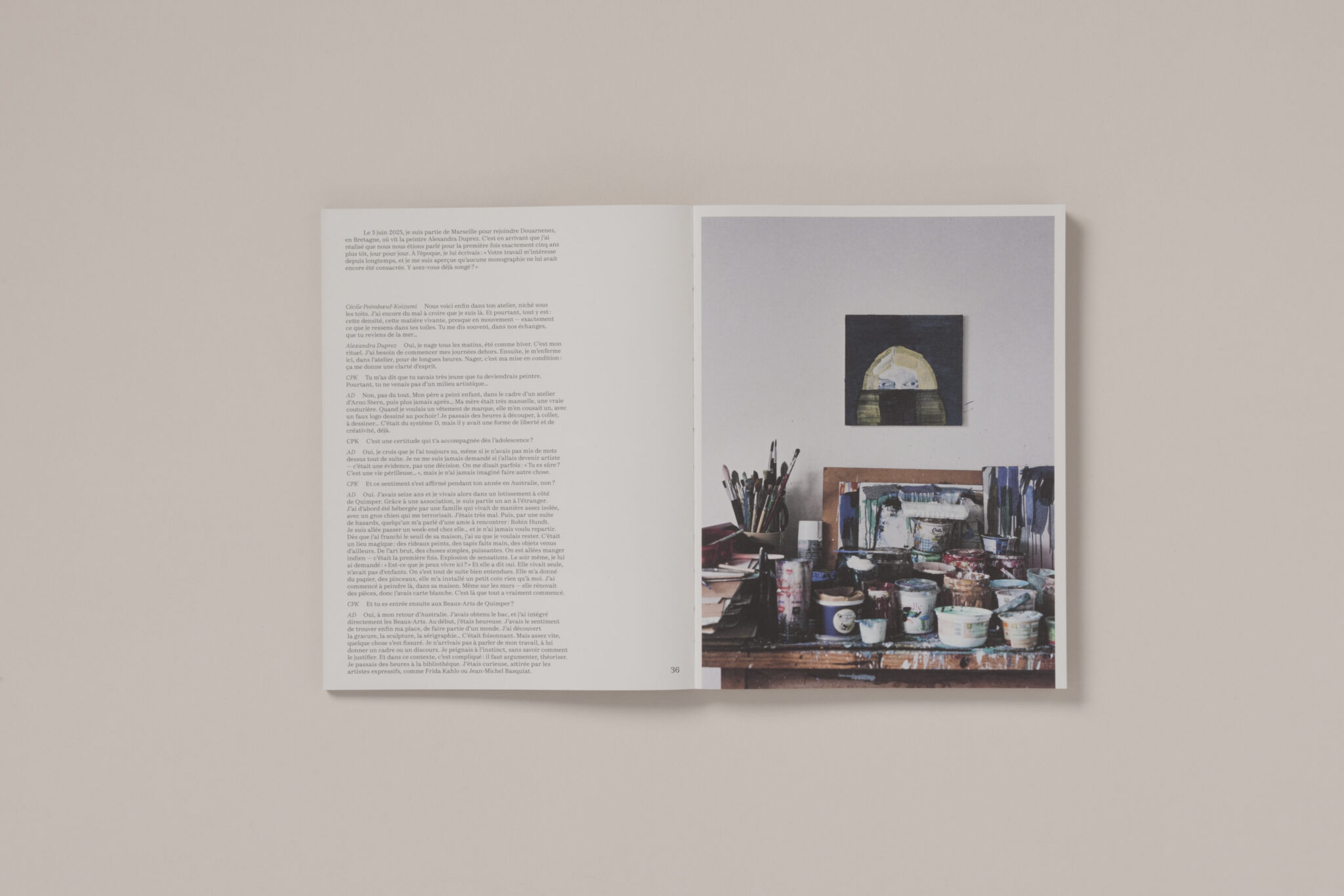 This first monograph brings together over a hundred works, carefully selected from a prolific body of art. The book opens with a text by Sophie Kaplan, director of La Criée Contemporary Art Center (Rennes), and is punctuated by a conversation between Alexandra Duprez and Cécile Poimbœuf-Koizumi (Chose Commune), accompanied by studio photographs taken in Douarnenez.