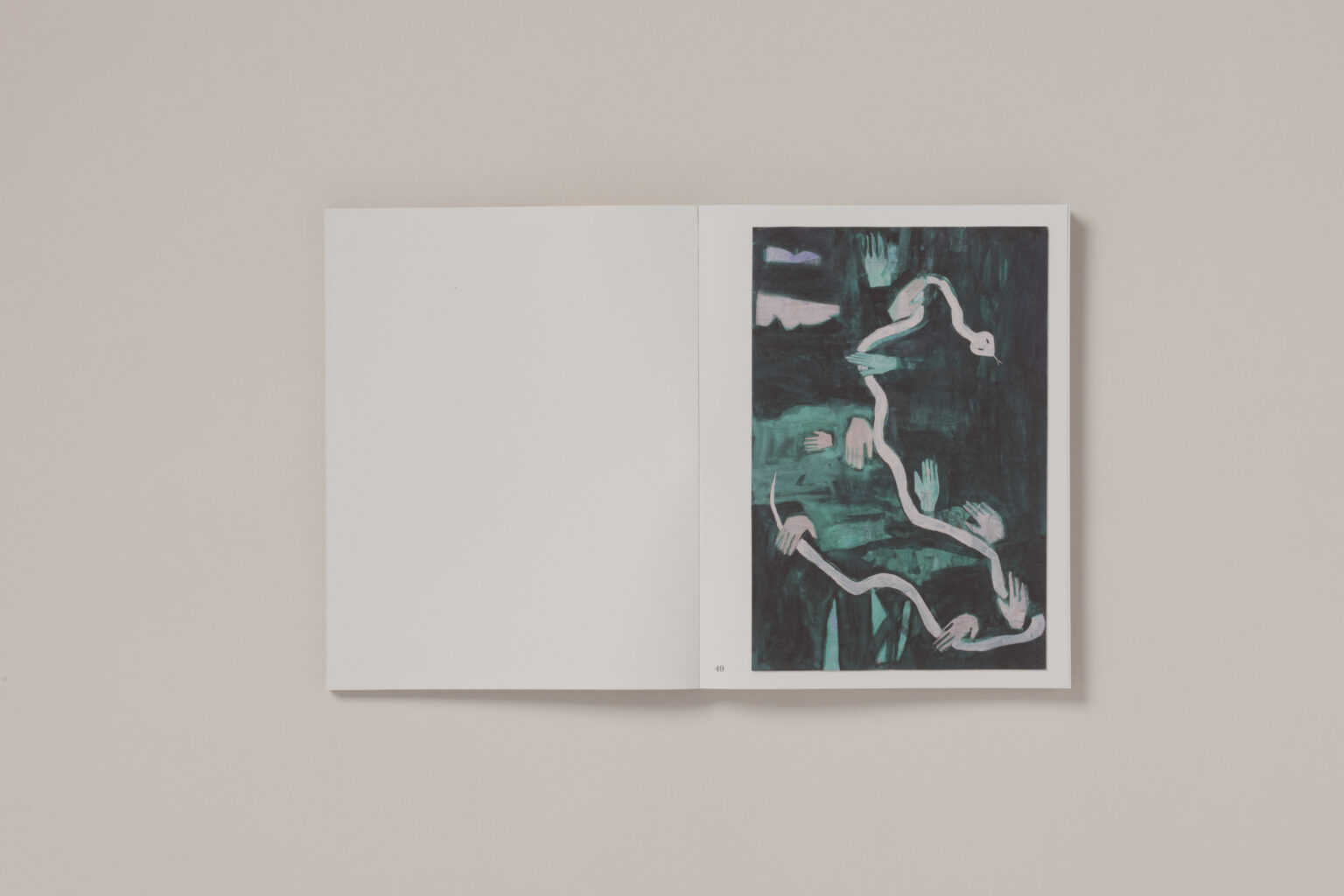 Her body of work is diverse, yet held together by a secret, almost silent thread. Within a universe unlike any other, she weaves a wondrous world where dogs, horses, and snakes coexist with humans. Deconstructed and in flux—represented through legs, hands, or eyes—these beings emerge as impenetrable points of consciousness.