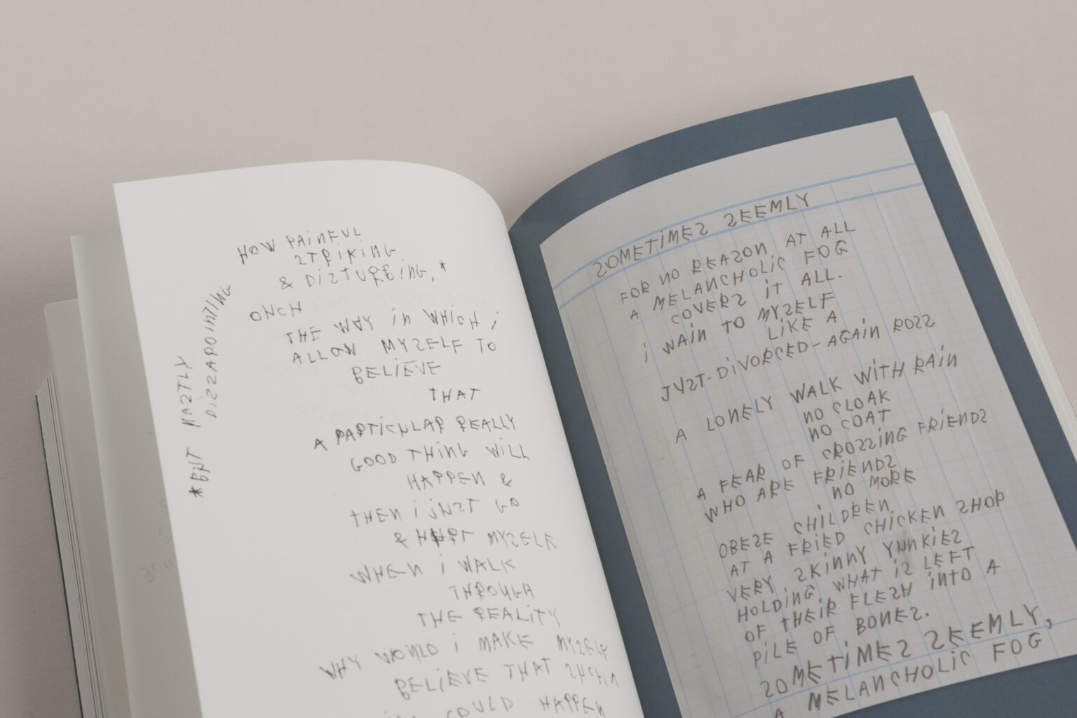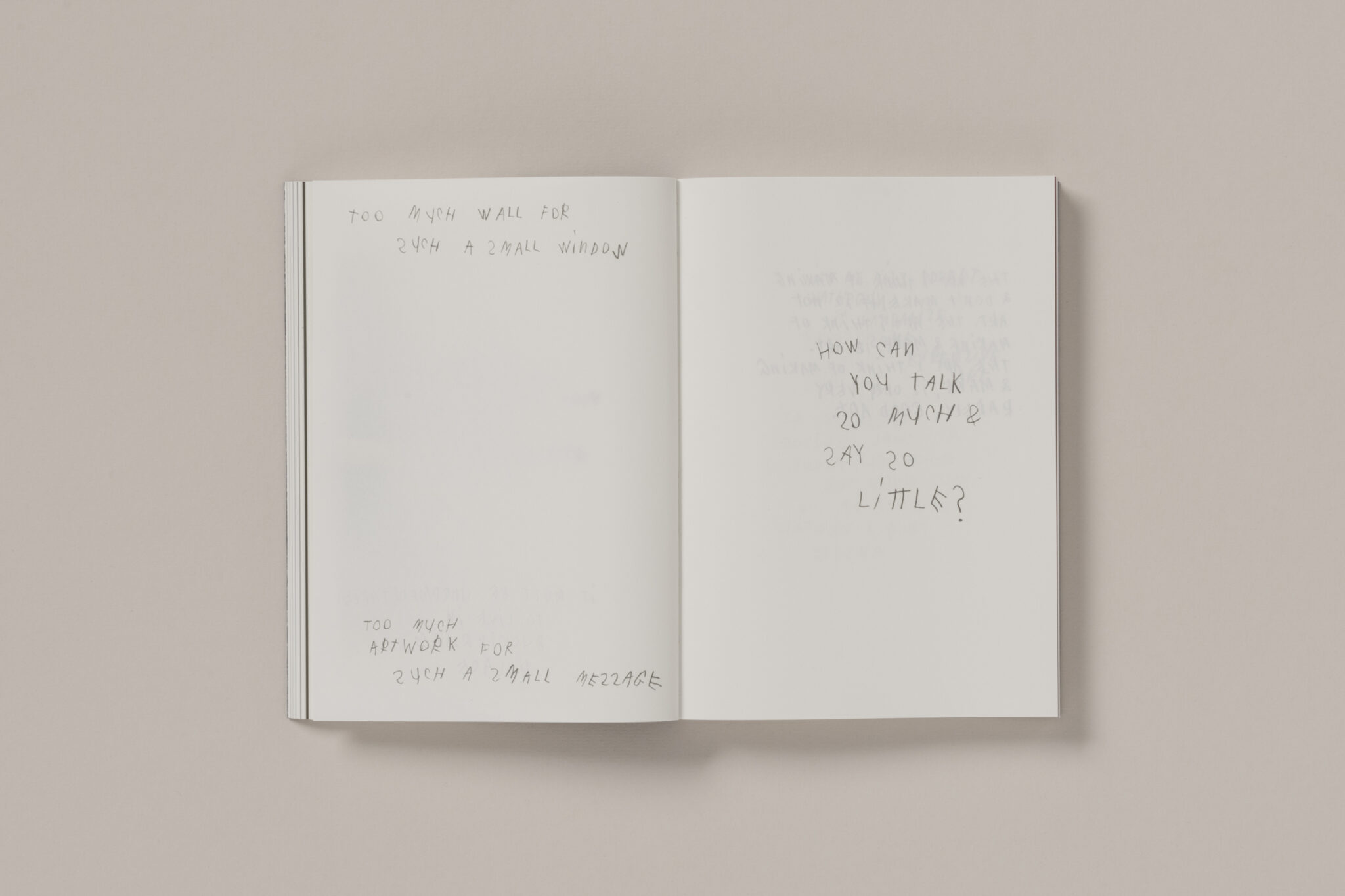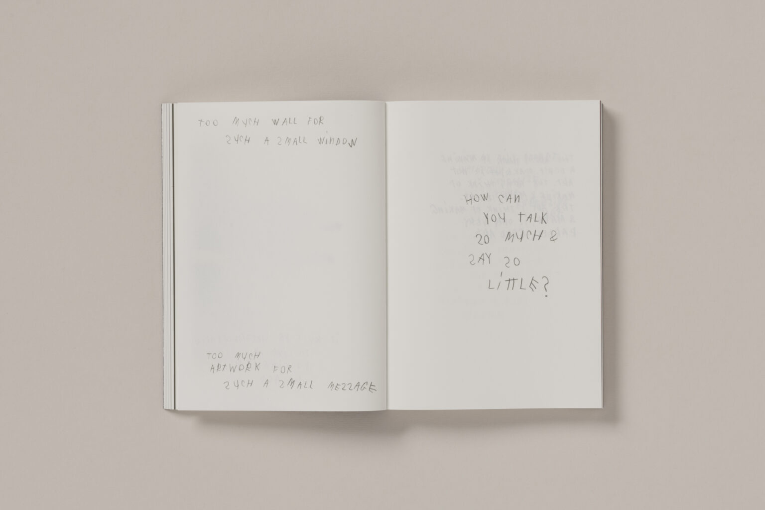 Unlike If You’ve Seen It All, Close Your Eyes, Words on Paper includes full-colour pages showing the original surfaces from which these writings emerged, offering the reader an immersive glimpse into the artist’s creative process.