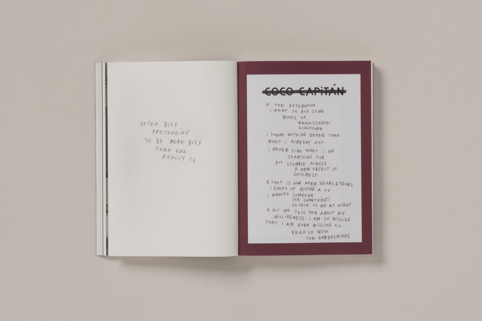Coco Capitan continues her exploration of writing as a vital gesture. Words on Paper brings together her ironic and intimate aphorisms — delicate fragments of fleeting thoughts.